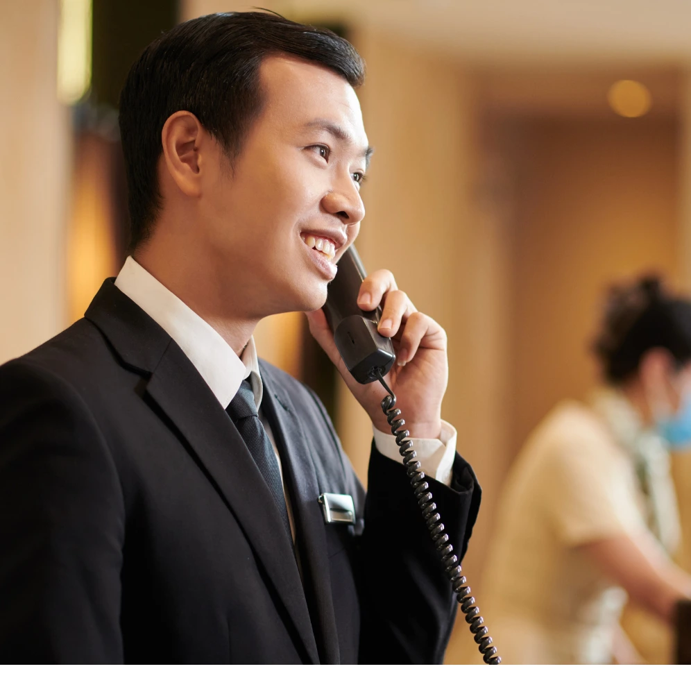 We help hotels answer every call instantly — day or night — so you never miss another booking. Guests get immediate, friendly assistance in any language, while your team stays focused on in-person service. Our AI Receptionist handles availability questions, booking flows, FAQs, and late-night inquiries with total reliability.